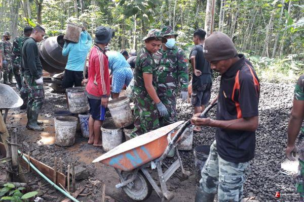 Kegigihan Anggota Satgas Dan Warga Saat Pengecoran Jalan