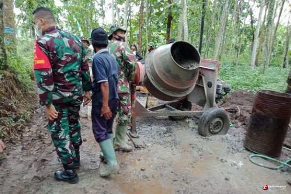 Kabupaten Semarang - Pengecoran jalan Desa Ketapang Kecamatan Susukan yang mendapatkan program TMMD Regular ke-110 Kodim 0714/Salatiga terus pacu semangat melanjutkan pengerjaan pengecoran jalan dari Program TMMD patut diacungi jempol.