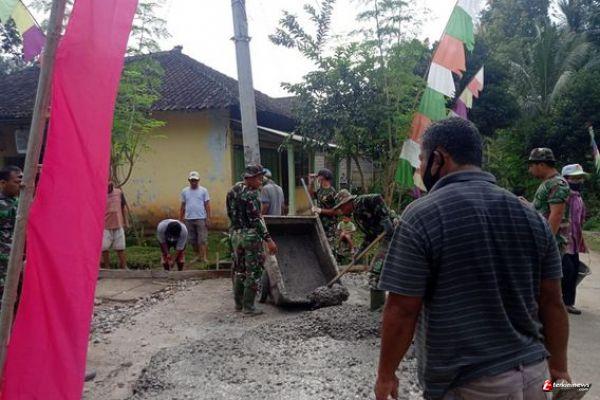 Kabupaten Semarang - Sasaran fisik dalam TMMD Regular ke 110 Kodim 0714/Salatiga yang tengah dikerjakan oleh Satgas TMMD dan warga adalah pengecoran jalan salah satunya.