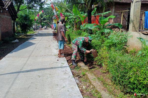 Kabupaten Semarang - Dalam rangka mengantisipasi terjadinya luapan air ke jalan dan genangan air di musim hujan,Satgas TMMD ke-110 Kodim 0714/Salatiga melaksanakan gotong royong membersihkan dan membuat parit di sejumlah pinggir jalan dan pekarangan bersama masyarakat Desa Ketapang.