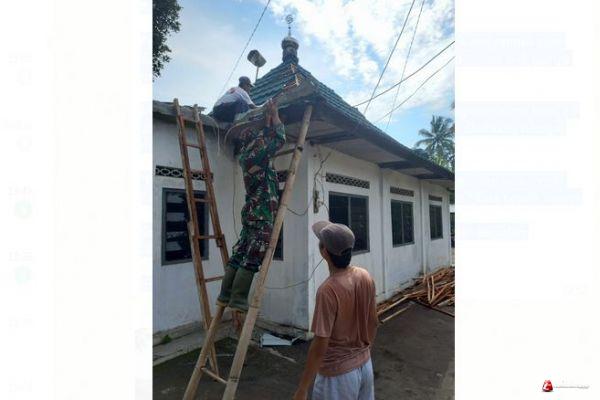 Pengakhiran Pemasangan Genteng Musholah oleh Satgas TMMD
