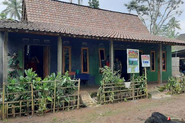 Aksi Anggota TMMD Reguler ke -110 Kodim 0714/Salatiga Demi Kesejahteraan Warga Ketapang,Anggota TMMD Kodim Salatiga nampak Dari depan Kopda Eri(34)Dari Yonif 410 Alugoro sedang mengecet bagian depan rumah supaya terlihat indah.