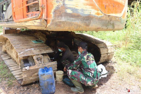 Personil Satgas TMMD Ke 110 Kodim 1206/PSB Dibantu Ahli Mekanik, Perbaiki Alat Berat yang Alami Kerusakan
