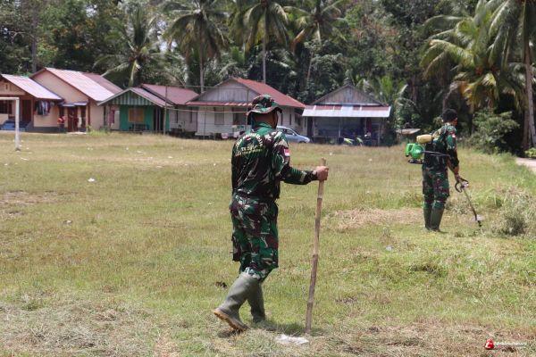 Satgas TMMD KODIM 1206/PSB Gelar Baksos Pembersihan Sarana Olahraga Sepak Bola.