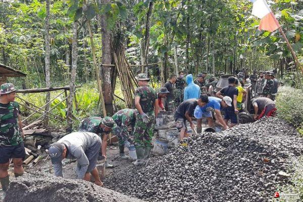 Tua-Muda Terlibat Langsung Bersama Satgas TMMD Bangun Jalan Rabat Beton