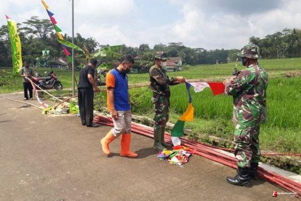 "Kali ini kami bersama warga saling membantu memasang umbul-umbul," kata Sertu Sugeng . Minggu (21/03/2021).