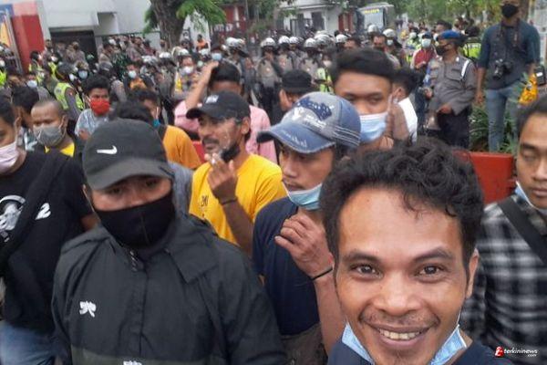 Polisi mengantisipasi datangnya massa ini demi menghindari kerumunan massa dalam jumlah banyak yang berpotensi menimbulkan penularan virus di masa Pandemi Covid-19.(Dharmyn)