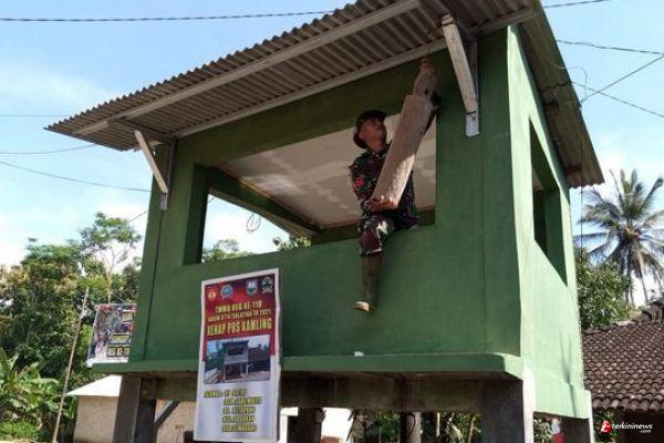 Seperti yang bisa kita lihat di Pos kamling yang berada di Desa Ketapang,Kecamatan Susukan,Kabupaten Semarang ini,salah satu anggota Satgas TMMD sedang memasang kentongan di Pos Kamling yang baru saja selesai di rehab.