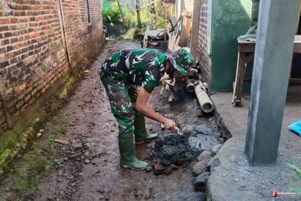 Desa Ketapang Kecamatan Susukan Kabupaten Semarang yang terkena program RTLH dalam TMMD , hari ini memasuki finising bagian teras samping rumah guna memperkokoh pondasi dan juga supaya terlihat rapi.