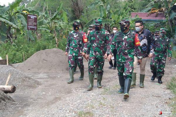 Kasdam IV/Diponegoro Brigjen TNI Wiji Prasetijono didampingi Danrem 071/Wijayakusuma Kolonel Inf Dwi Lagan Safrudin, S.I.P., meninjau pembangunan sasaran fisik TMMD 110 Kodim 0702/Purbalingga, Selasa (23/3/2021) di Desa Tumanggal Kecamatan Pengadegan Kabupaten Purbalingga.