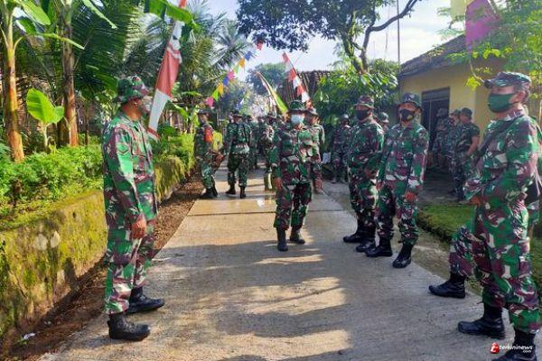 Kabupaten Semarang - Tampak anggota satgas berkumpul bersama, sebelum melaksanakan apel pengecekan di mulai, Serda Sumardi(47) salah satu personil dari Koramil 05/Tuntang yang tergabung dalam Satgas TMMD ke-110 Kodim 0714/Salatiga.