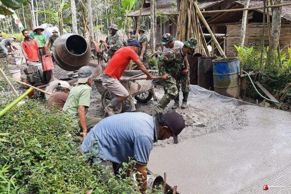 Pengerjaan yang dilakukan Satgas TMMD dan masyarakat terdiri dari pengecoran jalan, rehab Rumah Tidak Layak Huni dan renovasi Musholla serta Pos Kamling ini.