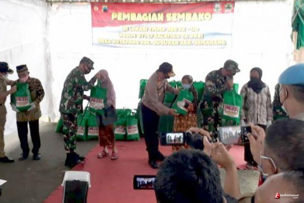Kabupaten Semarang - Dalam kunjungan kerjanya ke lokasi pelaksanaan TNI Manunggal Membangun Desa (TMMD) Reguler ke-110 Kodim 0714/Salatiga tahun 2021, di Desa Ketapang Kecamatan Susukan Kabupaten Semarang, Pangdam IV/Diponegoro, Mayjen TNI Rudianto, dan Kapolda Jawa Tengah, Irjen Pol Ahmad Luthfi, secara simbolis membagikan paket sembako kepada 30 orang warga Desa Ketapang.