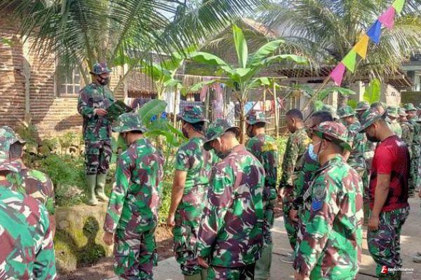 Kabupaten Semarang- Mengawali kegiatan pengerjaan sasaran fisik dan nonfisik, anggota Satgas TMMD Reg-110 Kodim 0714/Salatiga melaksanakan apel pagi diambil oleh Pasiter Kodim 0714/Salatiga Kapten Inf Sofyan Amirudin di Posko TMMD Desa Ketapang Kecamatan Susukan Kabupaten Semarang Rabu (24/03/2021).