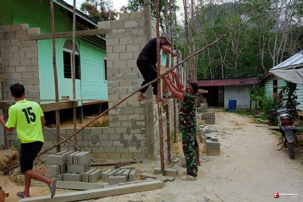 Anggota Pos Riam Sejawak Satgas Pamtas RI-MLY Yonif 407/PK, melaksanakan karya bhakti bersama warga merenovasi Gereja Riam Sejawak yang berada di Dusun Riam Padang, Desa Riam Sejawak, Kecamatan Ketungau Hulu, Kabupaten Sintang, Kalbar. Selasa (23/03/2021).