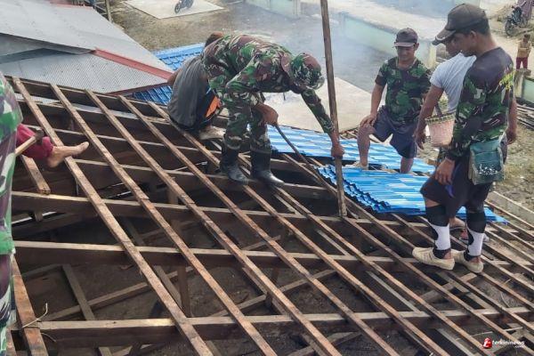 Danpos Langau I Letda Inf Ali Mustofa mengatakan, anggota Pos Langau I yang dipimpin Serda Diaz beserta lima anggota melaksanakan kegiatan karya bhakti bersama warga merenovasi genteng rumah milik Bapak Dahlan (51) yang merupakan salah satu warga didaerah binaanya.