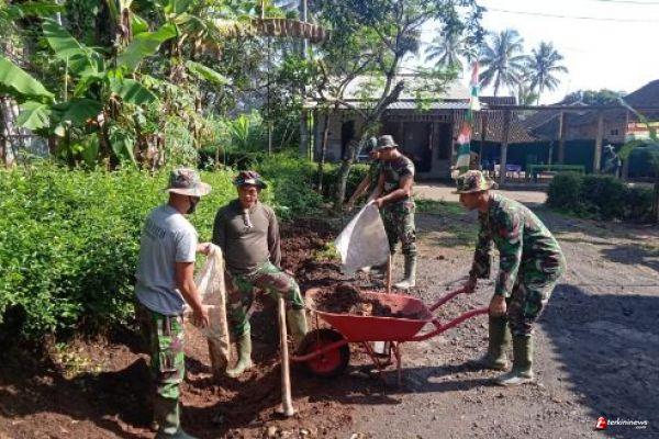 Seperti yang dilakukan oleh sejumlah anggota Satgas TMMD di Desa Ketapang, mereka terlihat sedang melebarkan parit yang ada di pinggir jalan di Dusun Sarimulyo Desa Ketapang.