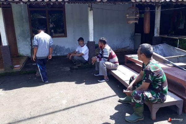 Terlihat Di rumah salah satu warga desa Ketapang kecamatan Susukan warga dan satgas Sambil berbincang bincang sembari melontarkan senyum.