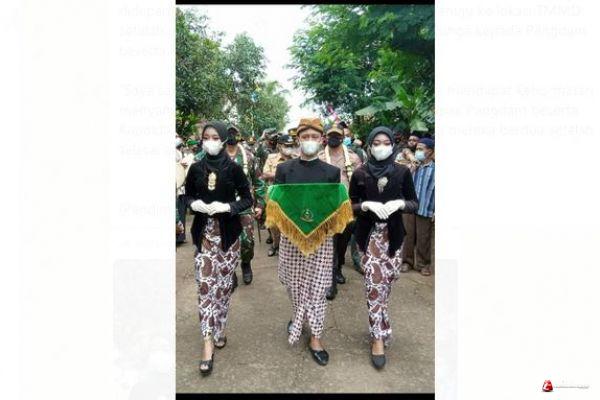 Terlihat dalam balutan kain kebaya serta memakai masker mereka berjalan didepan rombongan Pangdam beserta Kapolda menuju ke lokasi TMMD setelah mereka memberikan dan mengalungkan bunga kepada Pangdam beserta Kapolda.