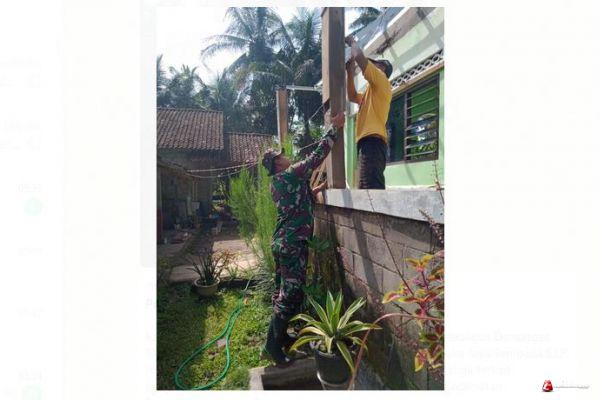 Koptu Listiyono(38) salah satu anggota satgas yang sedang membantu pengecoran tiang musholla, sambil sesekali memperhatikan kelurusannya agar hasilnya bagus dengan kelurusannya, seperti yang di harapkan.