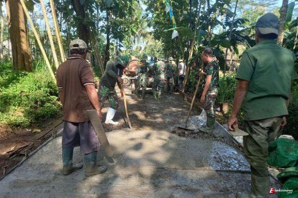 Kabuputen Semarang– Agar betonisasi cepat selesai, warga bersama Satgas TMMD ke -110 Kodim 0714/Salatiga dalam pengerjaannya mereka seolah tak kenal lelah, yang penting betonisasi jalan di Dusun Sari Mulyo Desa Ketapang Kecamatan Susukan, Kabupaten Semarang cepat selesai. Jalan sepanjang 1,264 meter dengan lebar 3 meter ini setiap harinya diserbu TNI dan warga Desa Ketapang Kecamatan Susukan Kabupaten Semarang Kamis 25 Maret Tahun 2021