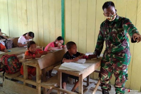 Minimnya Guru Diperbatasan, Satgas Pamtas Yonif 407/PK Bantu Mengajar