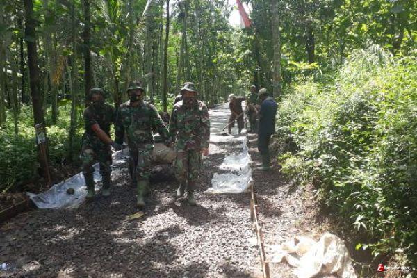 Satgas TMMD Reguler ke- 110 mengerjakan program pengcoran jalan menjelang selesai waktu pelaksanaan TMMD ini, untuk pengecoran jalan yang menjadi salah satu sasaran fisik TMMD sudah mencapai 90 persen.