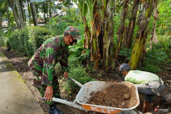 Kabupaten Semarang - Di lokasi TNI Manunggal Membangun Desa (TMMD) Reguler ke-110 Kodim 0714/Salatiga di Desa Ketapang Kecamatan Susukan Kabupaten Semarang, untuk meningkatkan kemanunggalan TNI dengan Rakyat, berbagai upaya terus dilakukan oleh personel Satgas TMMD.