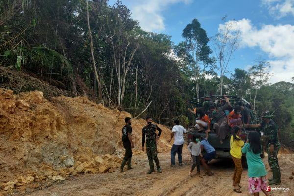Pengkadan - Komandan Kodim 1206/Psb Letkol Inf Jemi Oktis Oil S.I.P meninjau ke lokasi pekerjaan pembuatan jalan, disaat ingin melanjutkan perjalanan untuk meninjau lokasi TMMD yang lain, tiba-tiba langkahnya terhenti seraya memangil semua prajurit Satgas TMMD untuk berkumpul, dengan siap siaganya para prajurit Satgas TMMD, hitungan detik para prajurit langsung merapatkan barisan untuk mendengarkan arahan dari Dandim di lapangan bola Tintin Kemantan. Kamis (25/03/2021)
