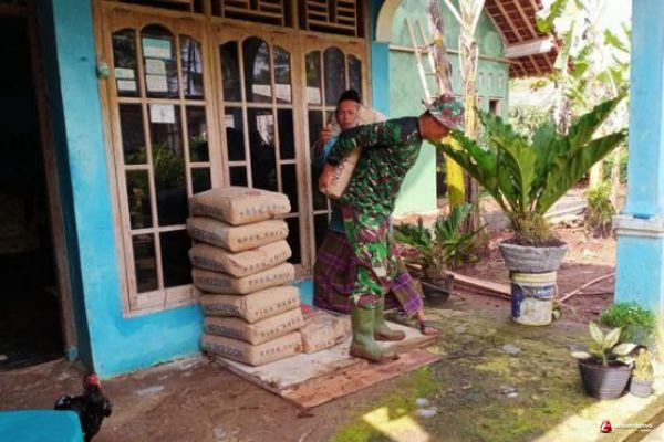 Anggota TMMD Berjibaku Angkat Seman Dengan Punggungnya