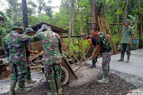 Tak pernah luntur kebersamaan TNI bersama masyarakat Desa Ketapang Kecamatan Susukan Kabupaten Semarang,Mari bersama sama melaksanakan setiap pekerjaan pengecoran jalan.