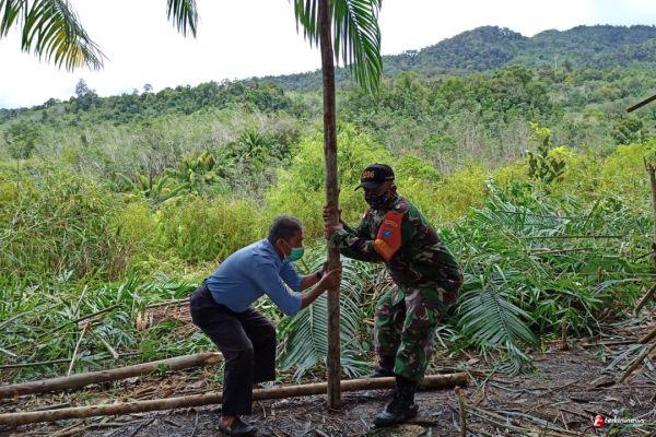 Forkomincam Bersama TMMD 110 Putussibau Tancapkan Tiang Wisata Uban