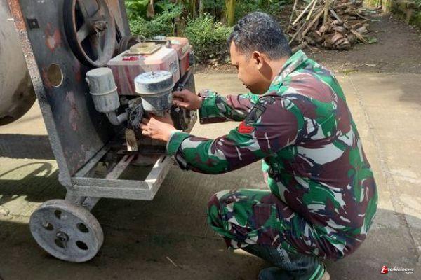 Untuk memastikan kondisi mesin molen tersebut, Koptu Listiyono, melakukan pengecekan mesin molen, mulai dari bahan bakar, nozle atau pengabut bahan bakar, filter sebagai penyaring dan juga air sebagai pendingin.