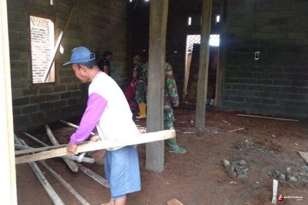 Kabupaten Semarang,Pengerjaan perehaban Rumah tidak layak huni ( RTLH ) bapak Sumarno ( 51 ) warga Desa Ketapang Kecamatan Susukan, dalam program TMMD Reguler ke 110 Kodim 0714/Salatiga sudah mulai tahap pemasangan kayu Usuk.