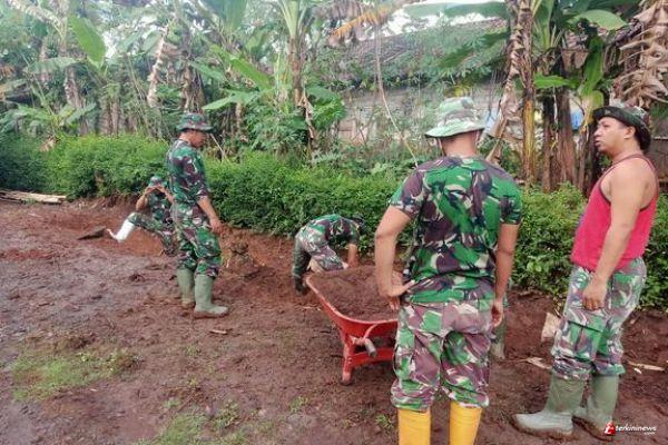 Koptu Slamet ( 38 ) personil satgas TMMD Demi mempermudah serta meringankan pergeseran tanah kami gunakan Arco armada gerobak dalam mengangkut tanah untuk penimbunan pinggiran jalan yang merupakan salah satu sasaran fisik.