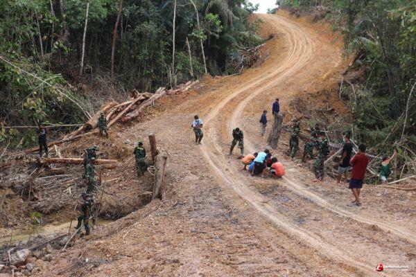 Pengkadan - Semua unsur di lokasi TMMD Regtas ke-110 Kodim 1206/PSB terus bahu membahu. Baik tua muda, perempuan laki - laki, terus digerakan di sejumlah sasaran fisik TMMD di Dusun Tintin Kemantan, Desa Hulu Pengkadan, Kecamatan Pengkadan, Kabupaten Kapuas Hulu, Provinsi Kalimantan Barat yang belum selesai.