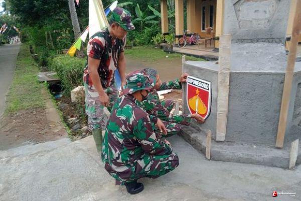 Pemasangan Simbul Kodam IV/Diponegoro di Monumen Satgas TMMD Tahun 2021