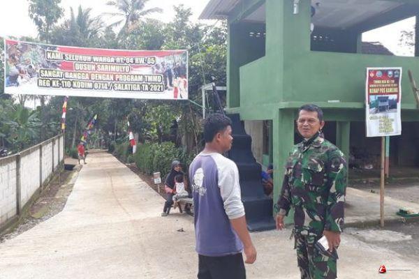 Kabupaten semarang-Anggota satgas TMMD Pasi Ter Kapten inf Sofyan Bersama warga Mahmudi (40) Ketua Rt 03 sarimulyo desa ketapang kecamatan susukan . melaksanakan pengecekan pos kampling di Desa ketapang salah satunya yang berada di Dusun Sarimulyo , yang bertepatan menjadi lokasi kegiatan TMMD . Sabtu (27/03/2021)