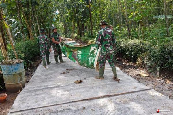 Hari ini, kata Kopda Setiawan anggota TMMD mulai melakukan pembersihan di sekitar lokasi pengecoran dan juga sisa sisa material.