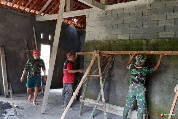 Kabupaten Semarang - Pada rehab RTLH rumah milik Munawir, warga RT 02 RW 04 Dusun Sarimulyo Desa Ketapang Kecamatan Susukan Kabupaten Semarang, untuk memudahkan pemasangan plafon, Koptu Sulistyo beinisiatif membuat tangga sederhana dari kayu dan bambu yang dirangakai sedemikian rupa.