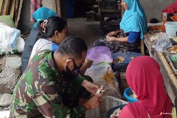 Ani(42)warga Dusun Sarimulyo Rt 02 Rw 05 Desa Ketapang, setiap hari memberikan makanan untuk para pekerja "Saya hanya bisa memasak, kalau suruh cangkul saya tidak bisa",sambil tersenyum ucapnya, saat itu juga Sertu Muji(43) Anggota TMMD ikut membantu Di dapur meracik bumbu bersama warga