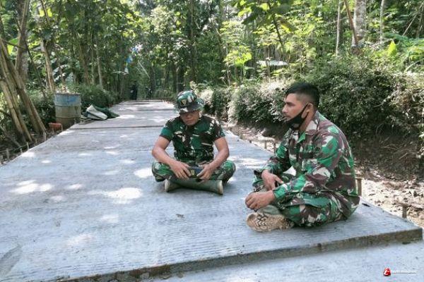 Satgas TMMD Berbincang Santai Saat Jam Istirahat