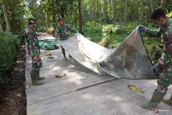 Kabupaten Semarang – Pengerjaan pengecoran jalan desa yang terletak di Desa Ketapang Kecamatan Susukan yang dikerjakan anggota TMMD reguler ke-110 Kodim 0714/Salatiga sudah masuk dalam tahap proses finishing baik pembersihan maupun kerapian yang lain.