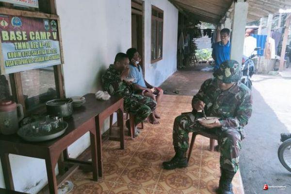 Kabupaten Semarang – Setelah dari pagi hingga siang hari bekerja melakukan pengecoran jalan rabat beton, anggota Satgas TNI Manunggal Membangun Desa (TMMD) Ke 110 Kodim 0714/Salatiga, menikmati makan siang bersama di rumah warga.