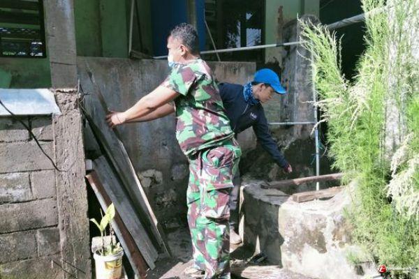 Praka Suyono bersama anggota Satgas lainnya, membantu Subhan (45) warga RT 04 RW 05 Dusun Sari Mulyo, Desa Ketapang, saat membersihkan dan memperbaiki sumur.