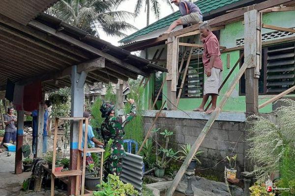 "Siap pak, jangan lupa tetap pegangan dan jaga keamanan diatas ya pak", ucap Serka Ali sambil menunjuk ke atas sebagai koordinasi menyiapkan asbes dengan dibantu warga lainnya.