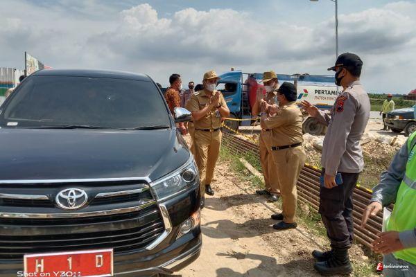 ​​​​​​​Bupati Kendal, Dico M Ganinduto, hari ini meninjau pekerjaan pembangunan bendungan karet Sungai Blorong, Desa Turunrejo, di Brangsong, Kendal, Senin (29/3/2021).