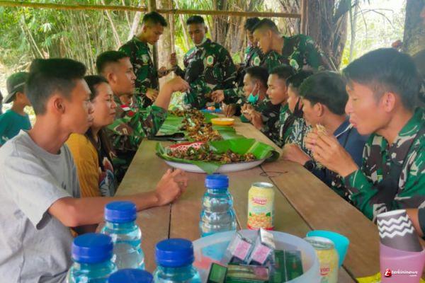 Sambil makan bersama, Ardi (27) dalam percakapanya menyampaikan bahwa makan bersama sebagai ucapan terima kasih, kepada TNI yang sedang membangun jalan, jembatan dan fasilitas lain di desa kami.