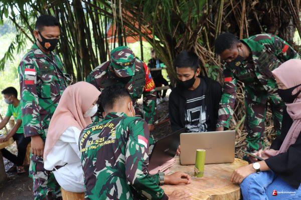 Pengkadan - keramahtamahan Dansatgas TMMD 105 Letkol Inf Jemi Oktis Oil S.I.P saat berkunjung ke lokasi desa sasaran, membuat sosok TNI diidolakan anak-anak di lokasi TMMD Dusun Suka Ramai, Desa Hulu Pengkadan, Kecamatan Pengkadan, Kabupaten Kapuas Hulu. Minggu (28/03/2021).