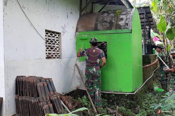 Dengan Rol, Sertu Agung Merubah Warna Mihrab  Musholla Al-Huda Menjadi Hijau